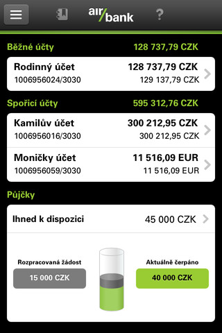 – pohodlnou obsluhu účtů, zadávání plateb nebo zjišťování zůstatků