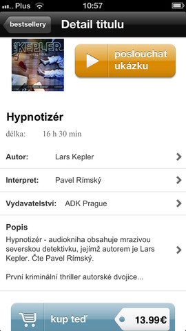 Aplikace iAudioteka je zdarma a zaregistrovaní uživatelé mohou kupovat v této díky této aplikaci audioknihy ve formátu MP3 k přímému stažení do iPhonu. V nabídce jsou tituly různých žánrů, u všech je ukázka zdarma a u většiny navíc kapitola zdarma ke stažení. V nabídce je nyní přes 1400 titulů, mimo jiné i úspěšný bestseller Steve Jobs. Platbu lze provádět kreditní kartou, bankovním převodem, přes PayPal, Mobito nebo formou SMS.