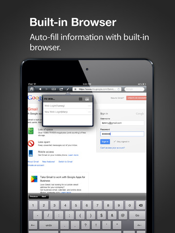 S mPass, nemusíte si pamatovat všechna uživatelská jména, hesla, webové adresy a ty nudné informace v moderním životě. mPass poskytuje bezpečný a jednoduchý způsob, jak ukládat a spravovat všechny Vaše hesla a soukromé informace. Je možné uložit údaje o kreditní kartě, PINy, bankovní účty, poznámky, přihlašovací jména webové stránky atd. na velmi bezpečném místě.