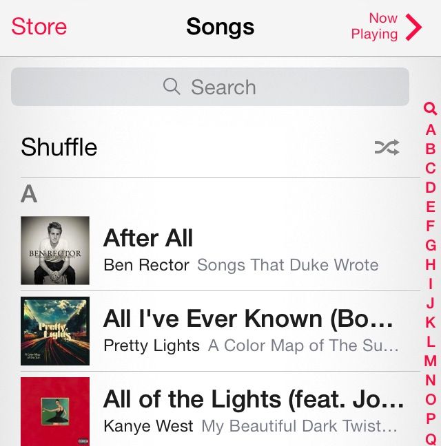 Shuffle (náhodný výběr) a stáhnout všechny písničky se vrátí do aplikace Hudba