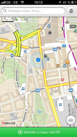 Aplikace Mapy.cz nabízí možnost stažení mapy celé České republiky přímo do vašeho mobilního telefonu. Můžete tak Mapy.cz využívat i v místech se slabým nebo vůbec žádným signálem.