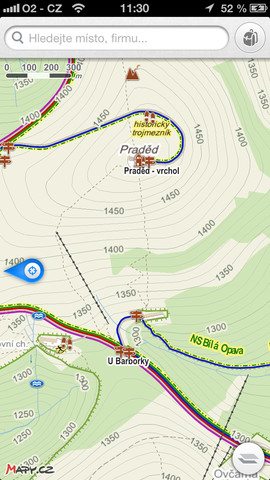 Jednoduché ovládání vám zaručí pohodlné používání aplikace Mapy.cz přímo v terénu.