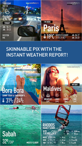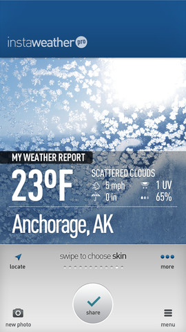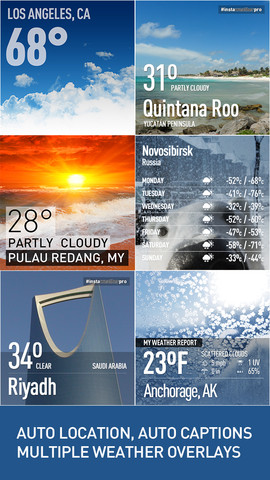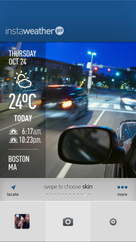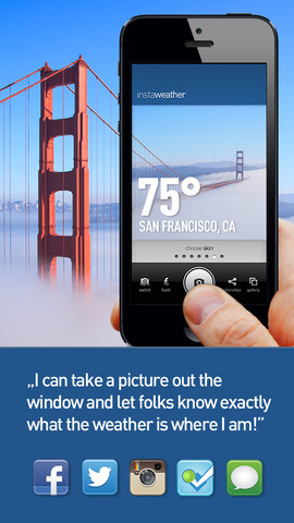 InstaWeather není další nudná aplikace na předpověď počasí. Tato aplikace funguje zcela jednoduše, fotku z malé části překryje inteligentní počasí a vy potom můžete už snadně sdílet na sociální sítě Facebook, Twitter, Instagram nebo tuto fotografii poslat na e-mail či v SMS. Aplikace je v 28. jazycích, kde je samozřejmě i čeština.