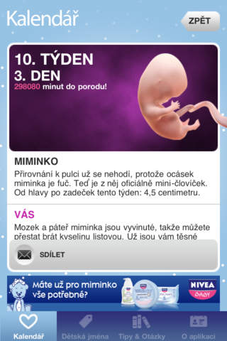 9 měsíců – Těhotenství krok za krokem, průvodce pro nastávající maminky. Aplikace obsahuje obrázkovou encyklopedii, zdravotní a praktické rady a pomůže s výběrem jména pro děťátko. Pro všechny uživatelky je připraven dárek.