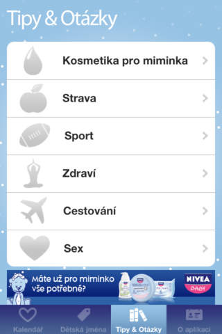 – Informace a rady ohledně sportování, sexu, cestování, stravy atd.