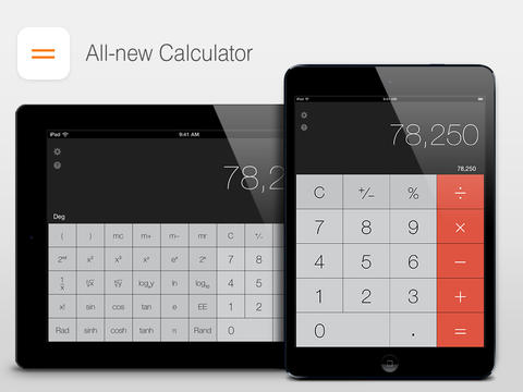 V zařízeních iPhone je kalkulačka samozřejmostí, ovšem jinak je tomu u tabletů iPad a iPad mini, tam už musíme hledat alternativní kalkulačky. V App Store obchodě je už kalkulačka přizpůsobena svým vzhledem k iOS 7.