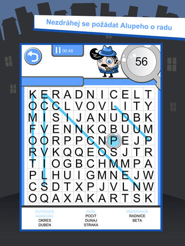 Detektiv Alupe potřebuje tvou pomoc při vyšetřování. Připoj se nyní k němu! Namáhej si mozek v této skvělé hře se slovy. Najdi a vyškrtni chybějící slova v zamíchané tabulce. Detektiv ti pomůže rozkrýt tajemství každého případu. Kdykoliv jsi v úzkých, neváhej ho poprosit o radu.Dokonči nové případy co nejrychleji to jde. Tvé úsilí bude odměněno! Jsi připraven pustit se do dobrodružství se slovy? Tak se seznam s detektivem Alupem osobně.