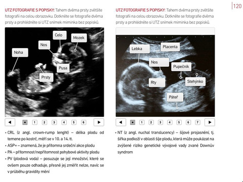 Videa natočená s předními českými lékaři vám přiblíží péči v průběhu těhotenství a zmírní vaše obavy z porodu. Díky názorné infografice a interaktivním popiskům se snadněji zorientujete v termínech vyšetření, výsledcích ultrazvuku nebo v kolonkách těhotenské průkazky. Kniha detailně ukazuje, jak se mění tělo těhotné ženy, jak se vyvíjí plod i co se děje uvnitř matčina těla.