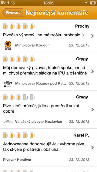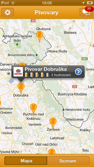 - přehledné zobrazení všech pivovarů v České republice, a to jak v seznamu, tak i na mapě