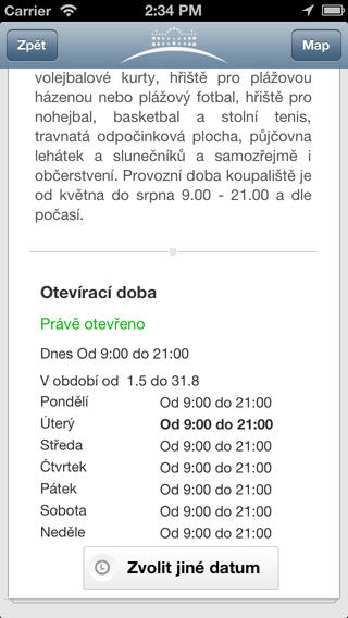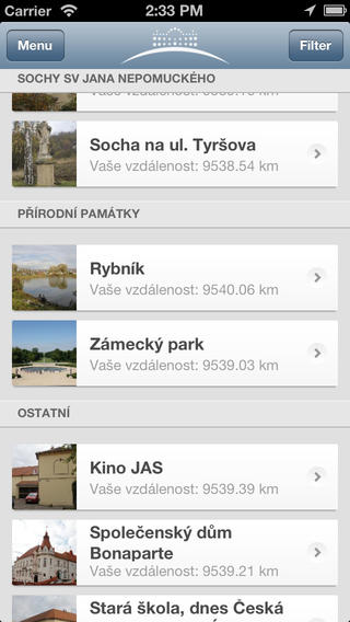 - seznam památek s podrobnými informacemi, navigací, otevírací dobou, apod.