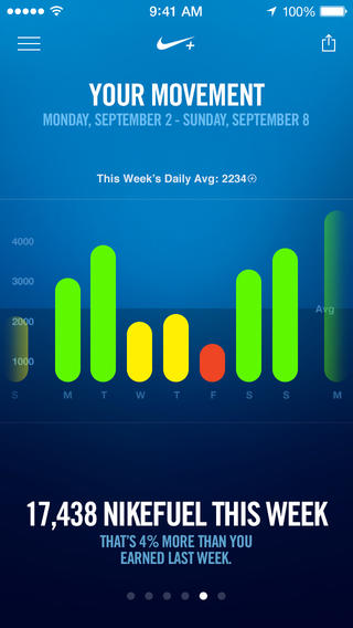- Ovládni den tím, že porazíš své průměrné score NikeFuel a tvůj graf se změní z červené na zelenou.
