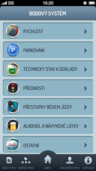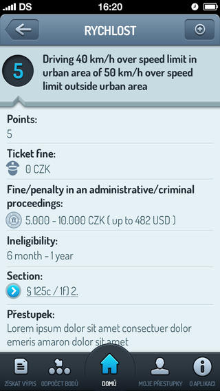 - přehledné procházení přestupků podle kategorií (katalog pokut související s bodovým systémem)
