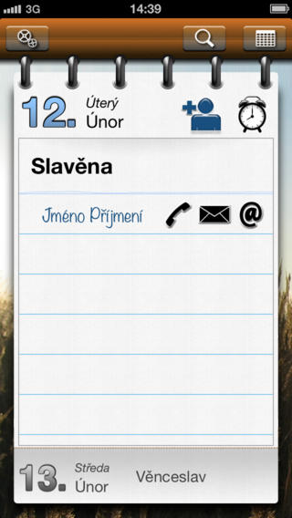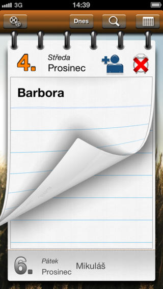 Nejlepší český jmenný kalendář s jedinečným designem imitujícím papírový kalendář, který Vám připomene kdo má dnes jmeniny, aby jste nezapomněli zapřát Vašim příbuzným a přátelům. Následně můžete přímo z aplikace zaslat blahopřejnou SMS, e-mail nebo zatelefonovat.
