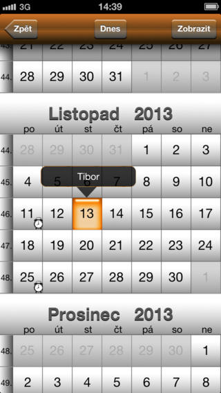 - možnost přidání vlastních jmen do kalendáře