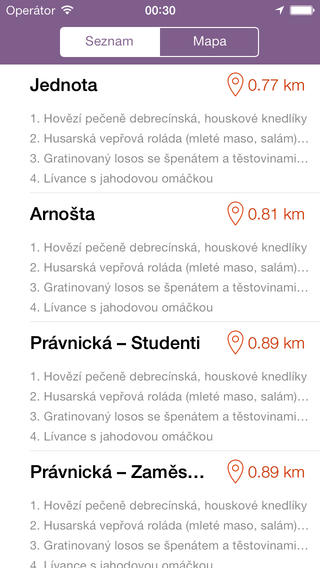 Aplikace Menzy UK umí zobrazit menzy v seznamu podle vzdálenosti od vaší polohy a na mapě města. U každé menzy zobrazí adresu a jídelníček až na 14 dní dopředu. Menzy UK nebyly optimalizovány pro iPhone 3GS a starší generace iPhone.