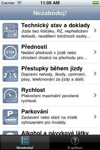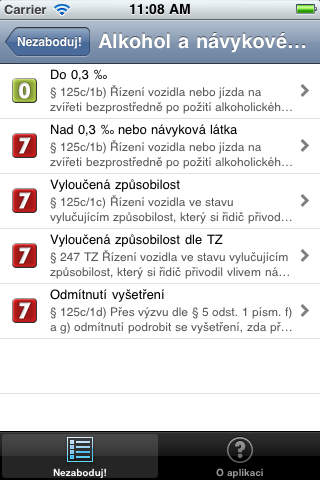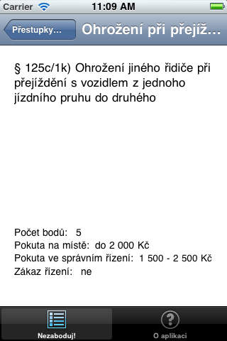 Aplikace obsahuje přehledně uskupené výtažky ze silničního zákona s ohledem na bodový systém. Zjistěte, kolik bodů získáte za jaké přestupky. Mějte aplikaci při ruce v momentě silniční kontroly, ať víte, v jakém rozmezí se může pohybovat výše pokuty. Aktualizováno ke dni 1. 8. 2011.