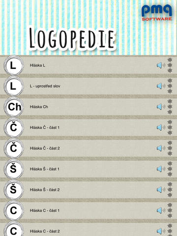 Aplikace Logopedie je určena dětem, které chodí na logopedii s vadou výslovnosti (dyslálií). V aplikaci najdete k procvičování hlásky: K, Ch, V, F, L, Ť, Ď, Ň, Č, Š, Ž, C, S, Z, R, Ř a spojení hlásek CSZ a ČŠŽ v jednom slově. Aplikace obsahuje jednotlivé lekce, ve kterých si děti mohou hlásky procvičovat. Cvičení slouží k upevnění správné výslovnosti hlásek ve slovech na začátku, uprostřed a na konci slov. Všechna cvičení slouží k tzv. fixaci hlásek ve slovech.