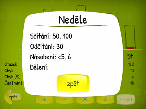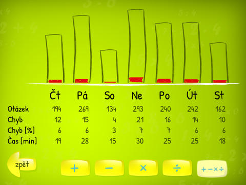 Chcete vědět, jestli dítě včera trénovalo příklady a jestli se zlepšuje? Zobrazíte si podrobné statistiky času stráveného v programu, počtu spočítaných příkladů a chyb!