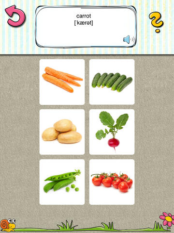 Pokud správně zvolíte obrázek pro dané slovo, pak pokračujete ve výuce. Pokud slovo neuhádnete, pak se vám znovu zařadí do výuky. Když nevíte, tak vám napoví otazník česky. Každý výraz je namluven rodilým mluvčím v češtině i angličtině a během výuky se zobrazuje anglický text. Děti v podstatě ani nemusí umět číst, protože celé ovládání je jen přes obrázky, které znázorňují dané slovo. V každé kategorii je možné procházet všechna slovíčka a poslechnout si, jak je vysloví rodilý mluvčí.