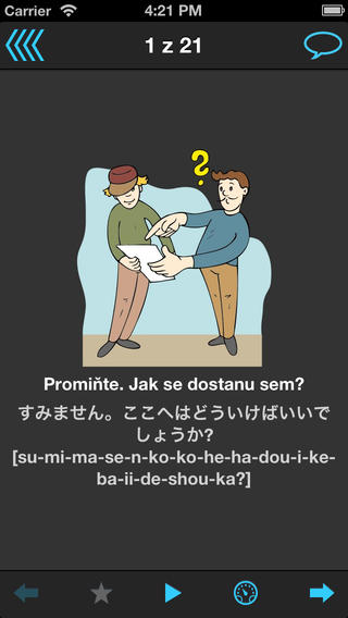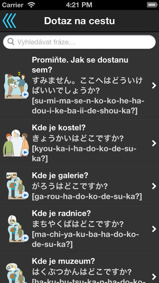 Cestovní tlumočník je mluvící jazykový průvodce, který překládá slova a fráze z češtiny do 33 jazyků. Aplikace Vám nabízí možnost komunikace v zahraničí také bez jazykových znalostí, protože v případě potřeby umí vyhledaný překlad přečíst nahlas. Snadno pochopitelné ilustrace usnadňují komunikaci dodatečně.