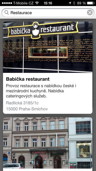 Celý katalog jsme schovali pod hledání, které čím víc budete používat, tím chytřejší bude. Integrované Mapy.cz díky kvalitnímu mapovému podkladu ukáží přesnou polohu každé firmy. Z aplikace můžete poslat zpětnou vazbu nebo fotografii ke každé provozovně. Pomůžete tím dalším uživatelům.
