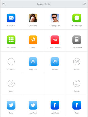 Launch Center Pro nyní přichází s verzí také pro iPad, tato aplikace je velmi oblíbená u uživatelů telefonů iPhone. V aplikaci máte totiž dlaždicové zobrazení s možností vlastního nastavení, díky tomu můžete začít psát zprávu konkrétnímu kontaktu jedním stisknutím, zadat novou událost do svého kalendáře, nebo přidávat příspěvky na Facebook či Twitter.