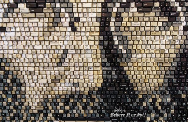 Portrét Steva Jobse složený z 6.000 kusů počítačových kláves má velikost 152 × 213 cm a kromě sestavení kláves jako potrét jsou v tomto obrazu zachyceny některé jeho významné proslovy, citáty a názvy revolučních produktů společnosti Apple. O tento unikátní portrét se postaral Doug Powell z Orlanda.