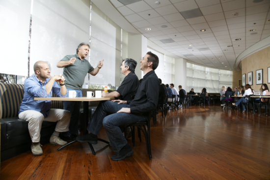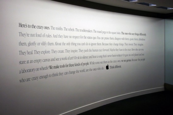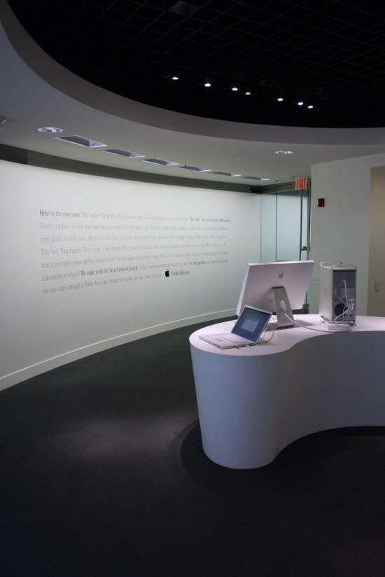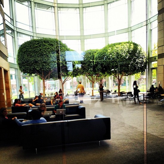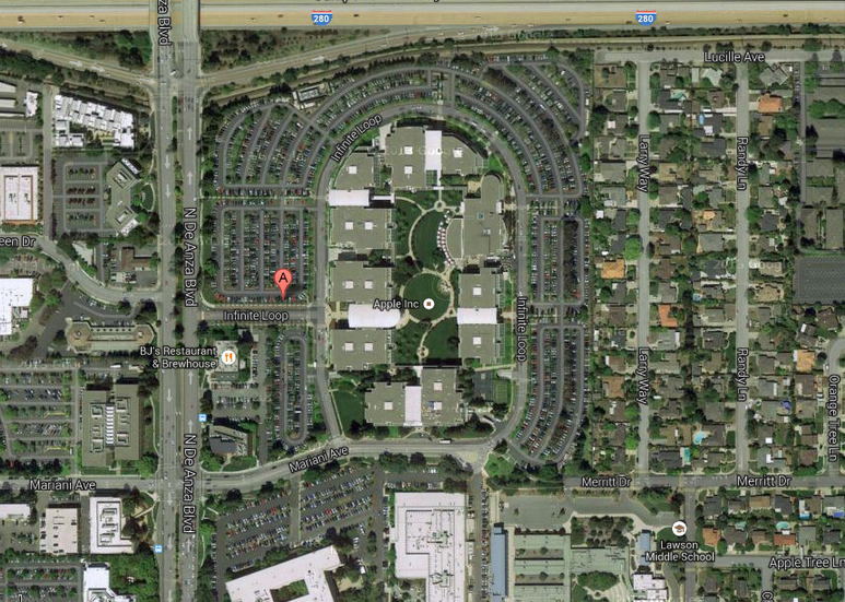 Apple centrála v Cupertinu je fascinující komplex budov skládajících se z vývojových středisek, restaurací, Caffe Mac’s – kaváren, relaxačních zón, kanceláří, přednáškových sálů, meetingových místností, ale i parku nebo zahrady. Do těchto prostor mají možnost nahlédnou pouze zaměstnanci a to ještě do jim přístupných pracovišť, kromě toho se nesmí v těchto prostorách fotit, ani jinak zaznamenávat.