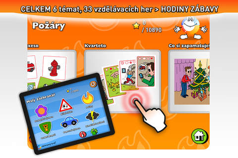 Profesionálně zpracovaný balíček celkem 33 jednotlivých her pro Vaše děti. Vše poutavou a naučnou formou. Osvojí si vědomosti, jak se chovat v různých rizikových situacích a naučí se řešit problémy běžného života. Staň se malým záchranářem. I ty, stejně jako tví hrdinové záchranáři, musíš znát všechna rizika a nebezpečí, která na tebe číhají doslova na každém kroku.