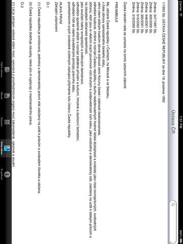 Zákony jsou rozděleny podle jednotlivých dílů zákona pro jednoduché a přehledné ovládání. Pojmy jsou uspořádány i abecedně. Aplikace je vhodná pro právníky, studenty, ale i pro lidi do běžného života, protože obsahuje funkci vyhledávání v celém textu zákona, což ji umožní používat každému, kdo ji využije nejen jako pomůcku v právních vztazích, ale i jako jednoduché získání informací jak postupovat v každodenních situacích. Funkce vyhledávání nerozlišuje velká a malá písmena a diakritiku. V aplikaci je také možné měnit velikost písma. Je přizpůsobena pro iPad.