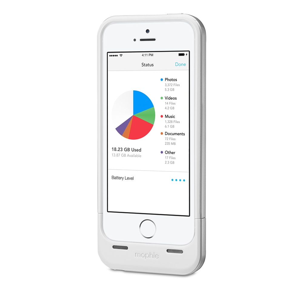 Pouzdro mophie space pack dodá iPhonu delší výdrž baterie a více úložného místa. Pouzdro space pack je pouzdro s dobíjecí baterií a vestavěným místním úložištěm k ukládání fotografií, videa a hudby v iPhonu. Pouzdro je ve dostupné v bílé a space gray, 16GB a 32GB za cenu 4.779,- Kč.