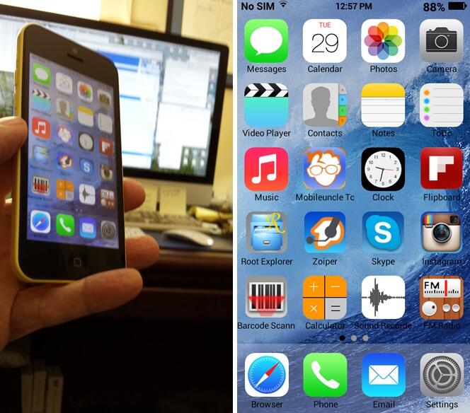 Nejen že tento telefon vypadá systémově stejně jako iOS, on je dokonce na první pohled k nerozeznání od pravého iPhonu 5c. Tato společnost už v minulosti kopírovala i jiné iPhony.