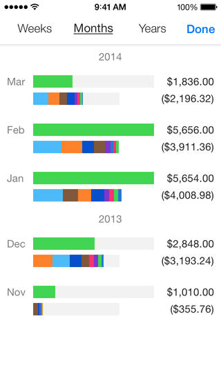 My Finances vám pomohou sledovat vaše příjmy a výdaje s lehkostí. Aplikace Vám umožní kategorizovat transakce a zobrazí týdenní, měsíční a roční statistiky. Krásné linie a sloupcové grafy analyzují příjmy a výdaje zábavnější formou. Aplikace je navržena tak, aby bylo snadné jí použivat i na cestách.
