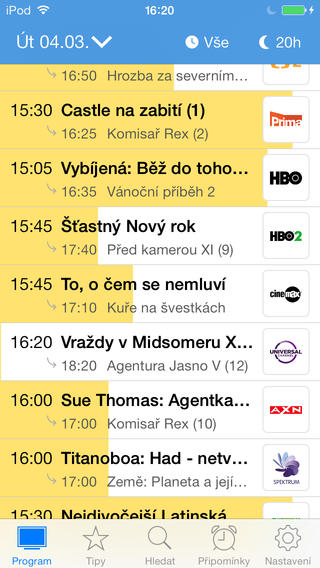 TV program nabízí uživatelům možnost, jak mít po ruce aktuální program vysílání televize. Aplikace přináší televizní stanice, které jde v Česku sledovat a k nim přehled, co momentálně hraje v televizi nebo co teprve hrát bude. Něco vám v televizi uteklo? Přidejte si pořad nebo díl do Připomínek a i když na něj zapomenete, mobil vás může upozornit a vám již nic neuteče.