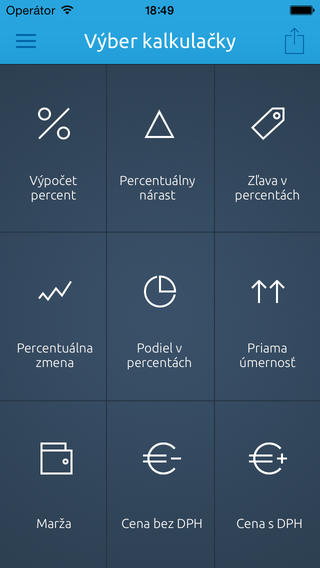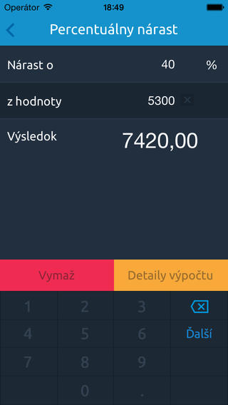 Chceš mít po ruce vždy kalkulačku, která ti pomůže s počítáním procent? Pak je toto pro Tebe ta správná aplikace. Je velmi intuitivní, za což vděčí čistému a jednoduchému designu. Dokáže zobrazit postup výpočtu a tedy víš, co se jako počítá. Umí si zapamatovat co jsi kdy počítal, aby ses uměl bez dalšího zadávání a počítání vrátit k výsledkům.