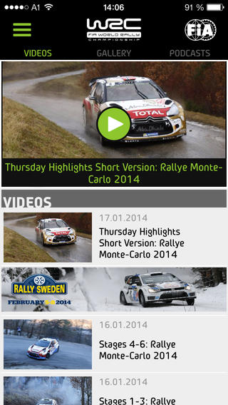 Oficiální aplikace FIA World Rally Championship, máte možnost sledovat jaká nejbližší rally se pojede, zobrazení startu prvních rychlostních zkoušek, dále aplikace nabízí články, fotografie, podcasty, deníky závodníků a další. Všechna data pocházejí z oficiálního webu.