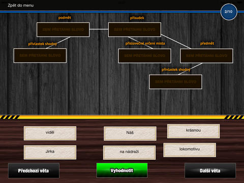 Aplikace je určena všem, kteří si chtějí procvičit rozbory vět jednoduchých. Aktuální verze obsahuje 32 větných rozborů rozdělených dle náročnosti do 3 základních skupin. Po zadání věty si vyzkoušíte vytvořit hierarchický model věty a aplikace vám zobrazí správné řešení.