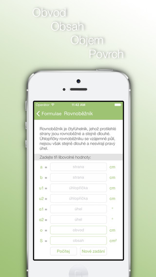 V žádném případě však nečekejte škrobenou učebnicovou tabulku. Tato interaktivní pomůcka nabízí k výběru z několika matematických a geometrických oborů s možností okamžitého výpočtu pouhým dosazením známých hodnot do příslušných políček. Zároveň je každá z úloh v krátkosti vysvětlena a doplněna o tzv. poučku s příkladem.