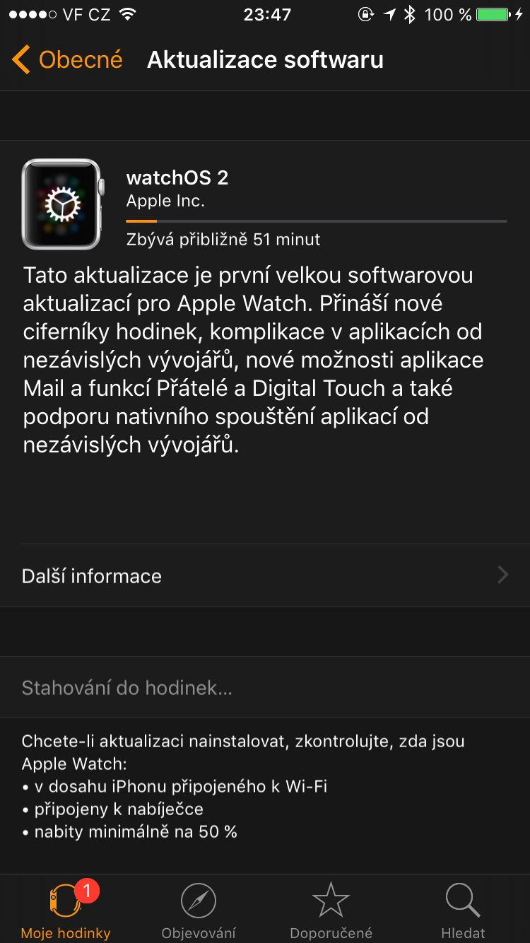 Samotný instalace systému watchOS 2 do Apple Watch může trvat několik desítek minut.