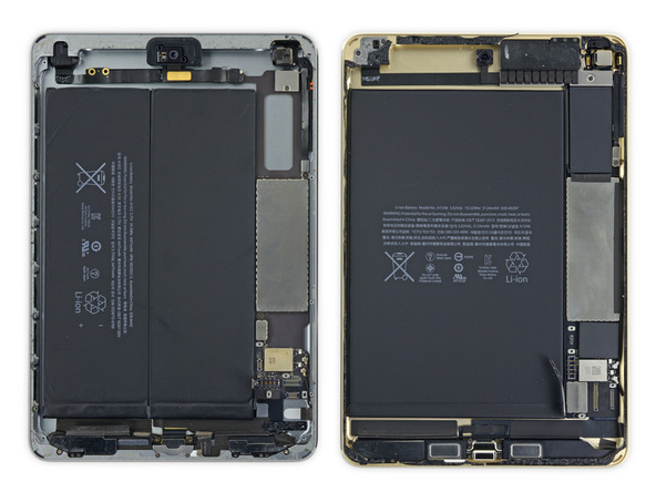 iFixit.com je opět první v rozebrání nového tabletu iPad mini 4. Tento průzkum formou rozebrání prozradil 2 GB paměti RAM, nataktovaný procesor Apple A8 na 1,5 GHz a menší baterii z původních 6.471 mAh na 5.124 mAh. Výdrž baterie je přitom stejná jako u předchozího iPadu mini 3, takže se Applu podařilo snížit spotřebu energie v zařízení.
