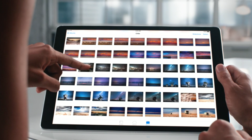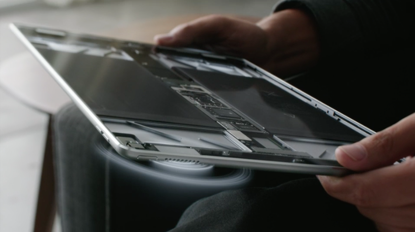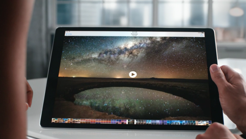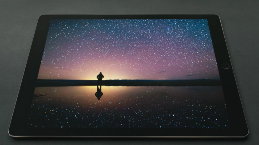 Tim Cook potom začal mluvit o iPadu „iPad je vyjádřením naší vize budoucnosti výpočetní techniky.“ Apple ukazála ve videu vůbec první pohled na iPad Pro. Tento iPad má čtveřici reproduktorů. Pak příjde Tim Cook na pódium a drží v rukou iPad Pro.