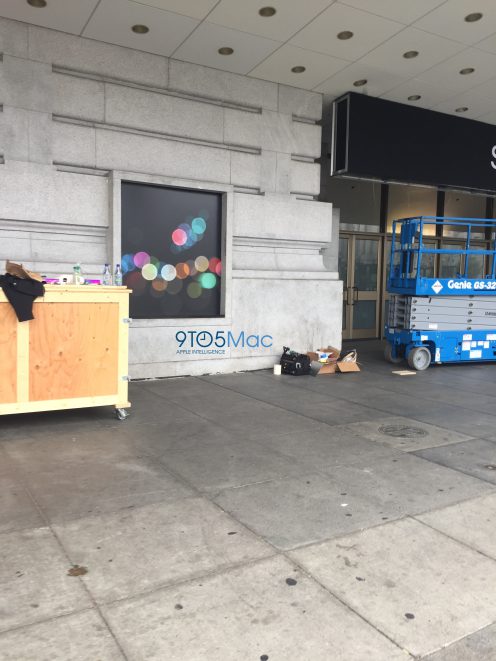 Apple jako klasicky zdobí místo konání svého eventu, kde představí nové produkty. Pro tento rok se místem stalo opět Bill Graham Civic Center v San Francisku a Apple začal s přípravami. Umístil tedy své logo a nad vstupy černé tabule s nápisem „Special Event“.