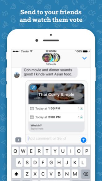 Microsoft vydal aplikaci, která je zaměřená na komunikaci v iMessage na platformě od Applu. iOS aplikace umožňuje uživatelům navrhnout činnost, časy a setkání s přáteli, včetně zájmových bodů a doporučení jako je např. jídlo, atrakce, film a další.