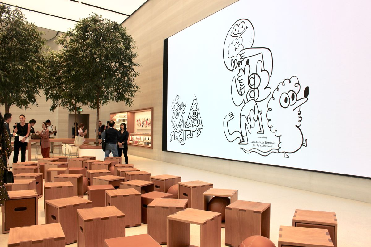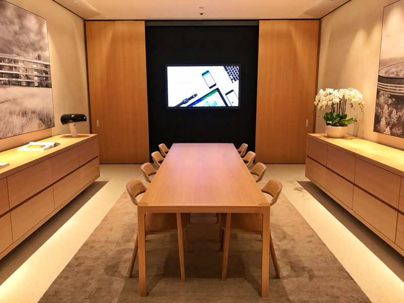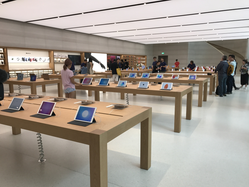 Apple Store obsahuje speciální schodiště inspirované Apple parkem a najdete zde i živé stromy, které byly speciálně přivezeny z Malajsie.