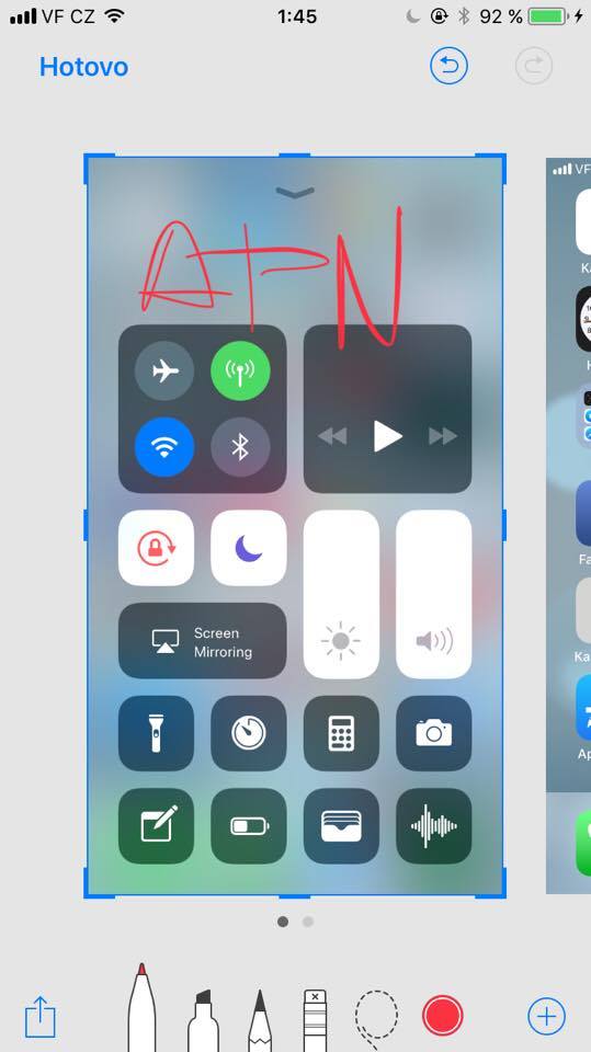 Jednou z nejvíce výrazných změn prošlo Kontrolní centrum, kde si konečně můžete nastavit, jaké funkce chcete z tohoto centra ovládat. Změna k nepoznání je i kalkulačka. Každý snímek obrazovky zajede do rohu obrazovky a ten můžete následně editovat, připsat poznámku a až potom uložit do galerie fotografií.