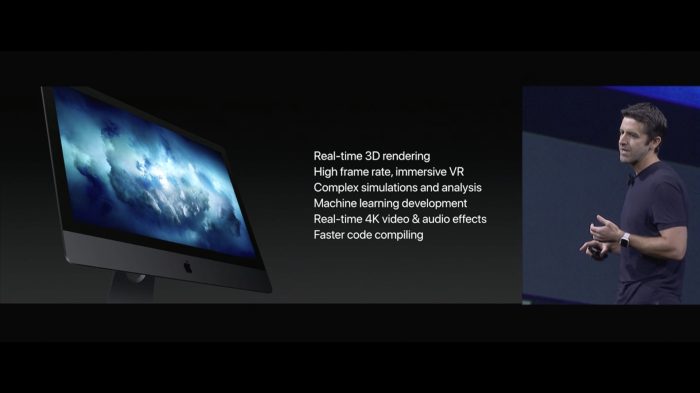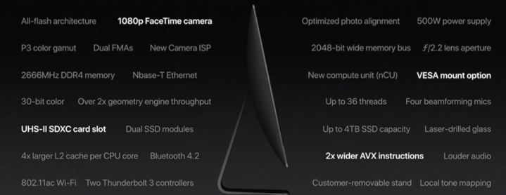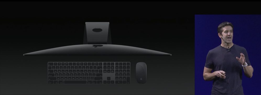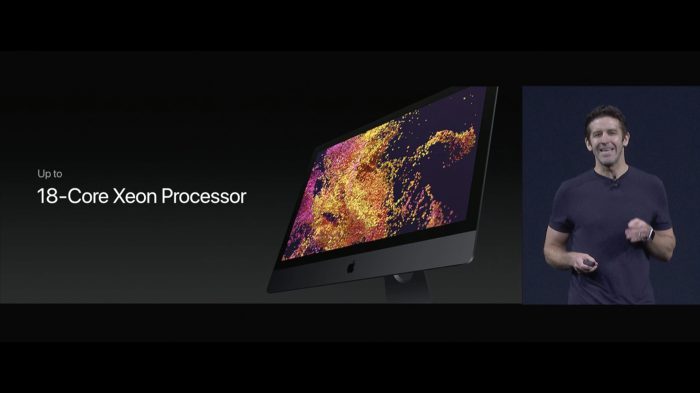Je tu nový iMac Pro! Ano, úplně nový iMac Pro ve vesmírně šedé barvě a jedná se o takový iMac s nejvyšším výkonem. Absolutně přepracované chlazení cirkulace vzduchu. Procesor u toho Macu bude Xeon a to buď 8, 10 nebo 18 jádry. 10GB Ethernet, Radeon Vega grafika, 32gb ECC paměti, zvládající 44 milionů pixelů.