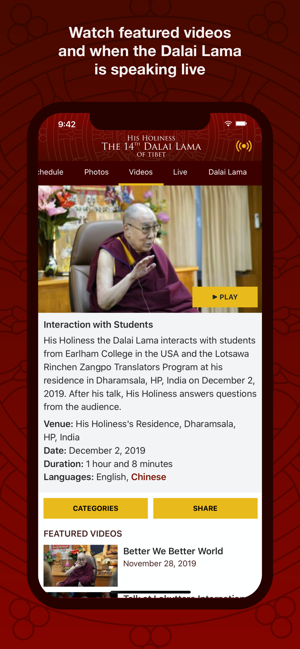 Aplikace je jednoduše nazvaná Dalai Lama, a zatím nemá dostatek hodnocení v bodování obchodu s aplikacemi App Store.