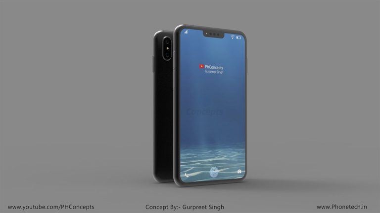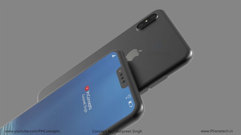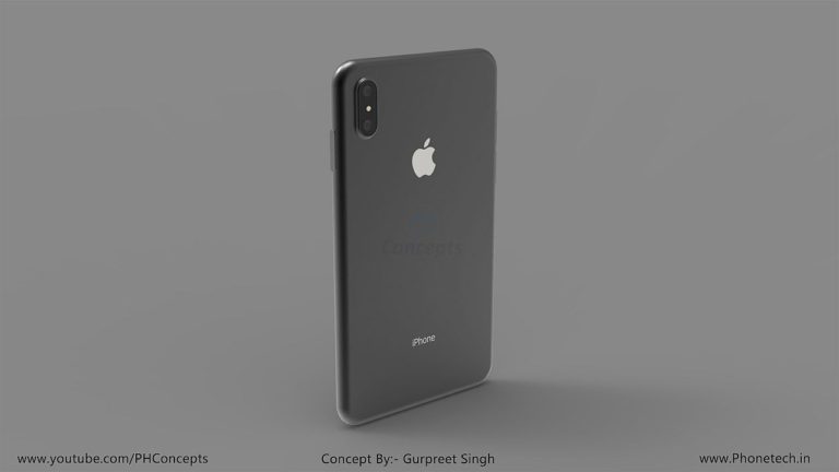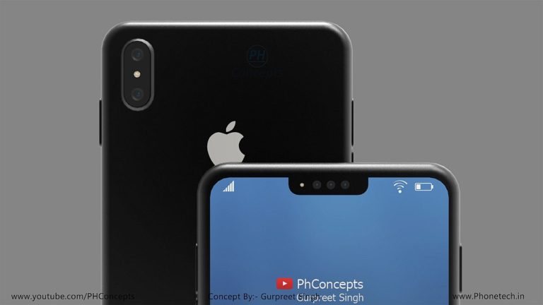 Koncept telefonu iPhone Xs vytvořil Gurpreet Singh pro PHConcepts. Menší iPhone Xs se třemi fotoaparáty ve předu a duálním fotoaparátem vzadu. Rámeček z nerezové oceli a výřezy na zadní a přední kamery. Tentokrát se zdá, že zadní kryt není skleněný, ale spíše matný.
