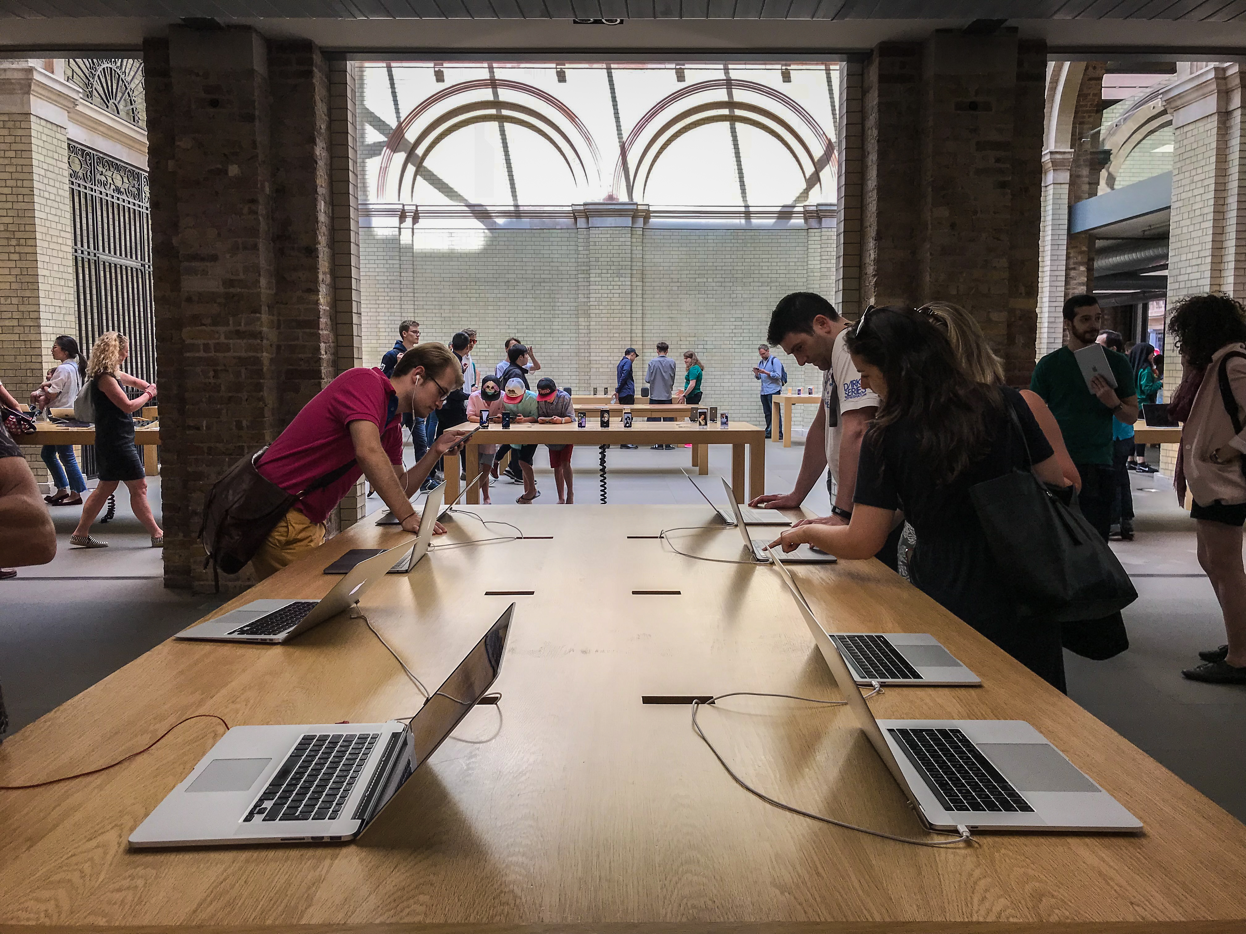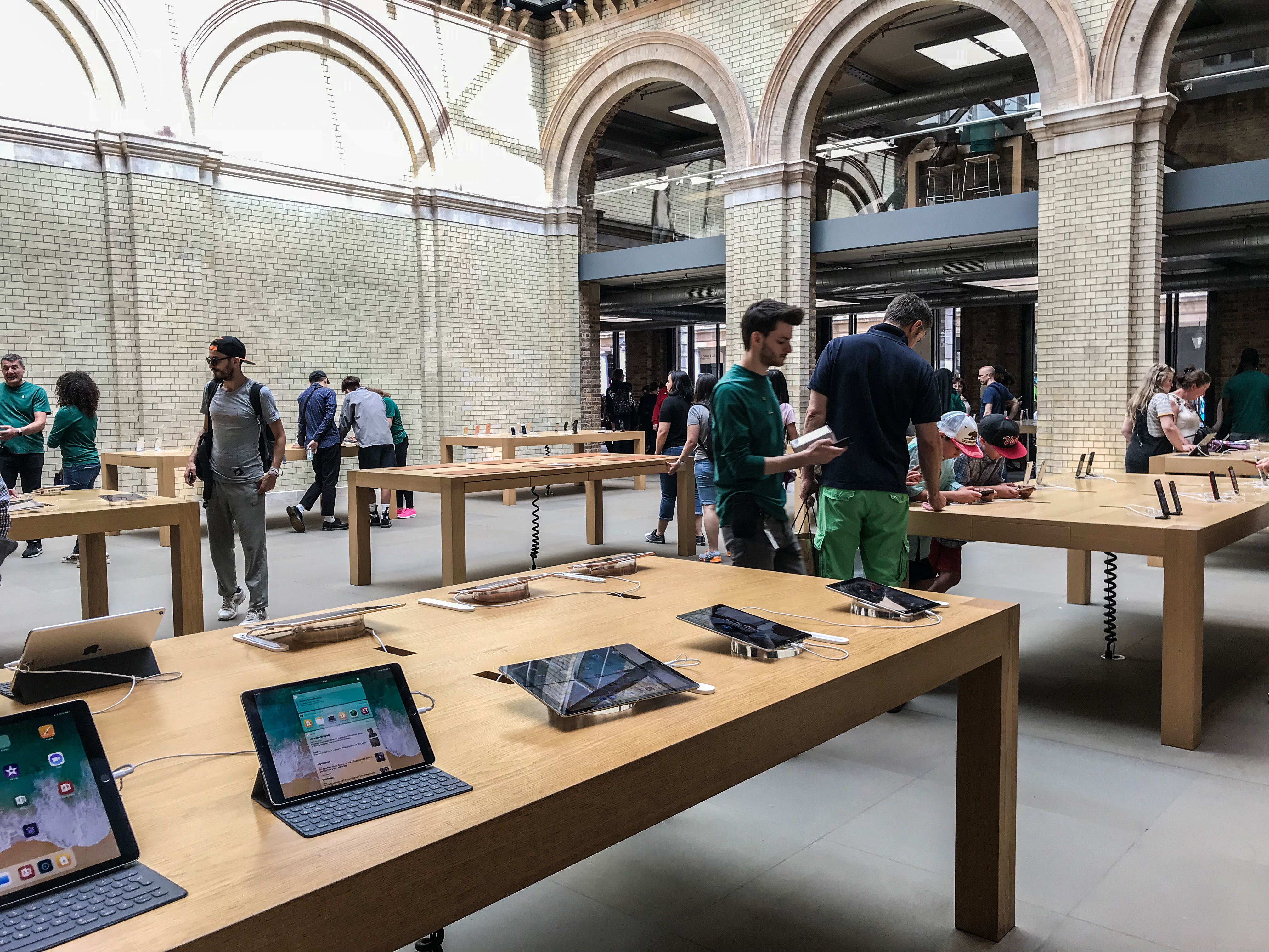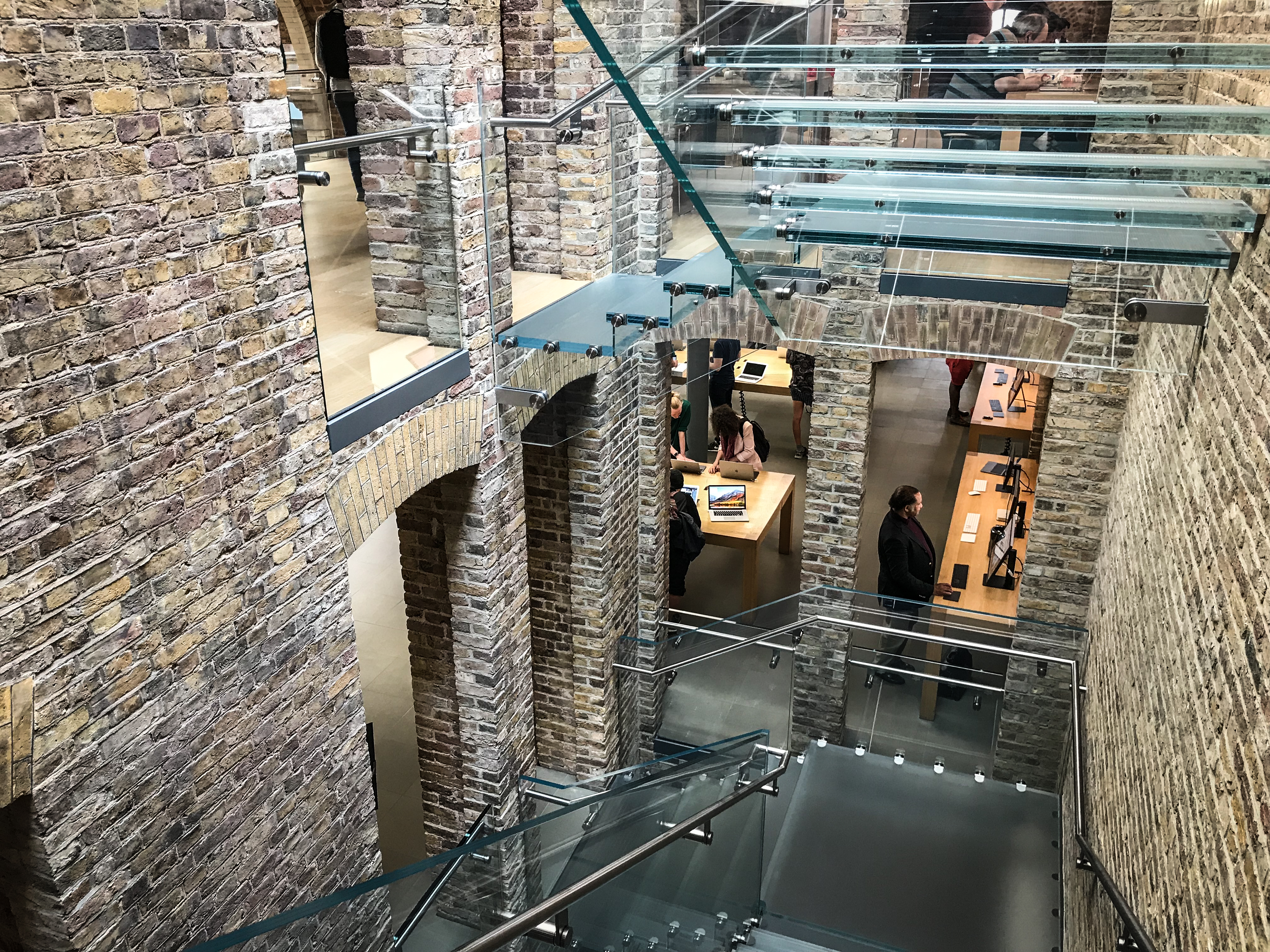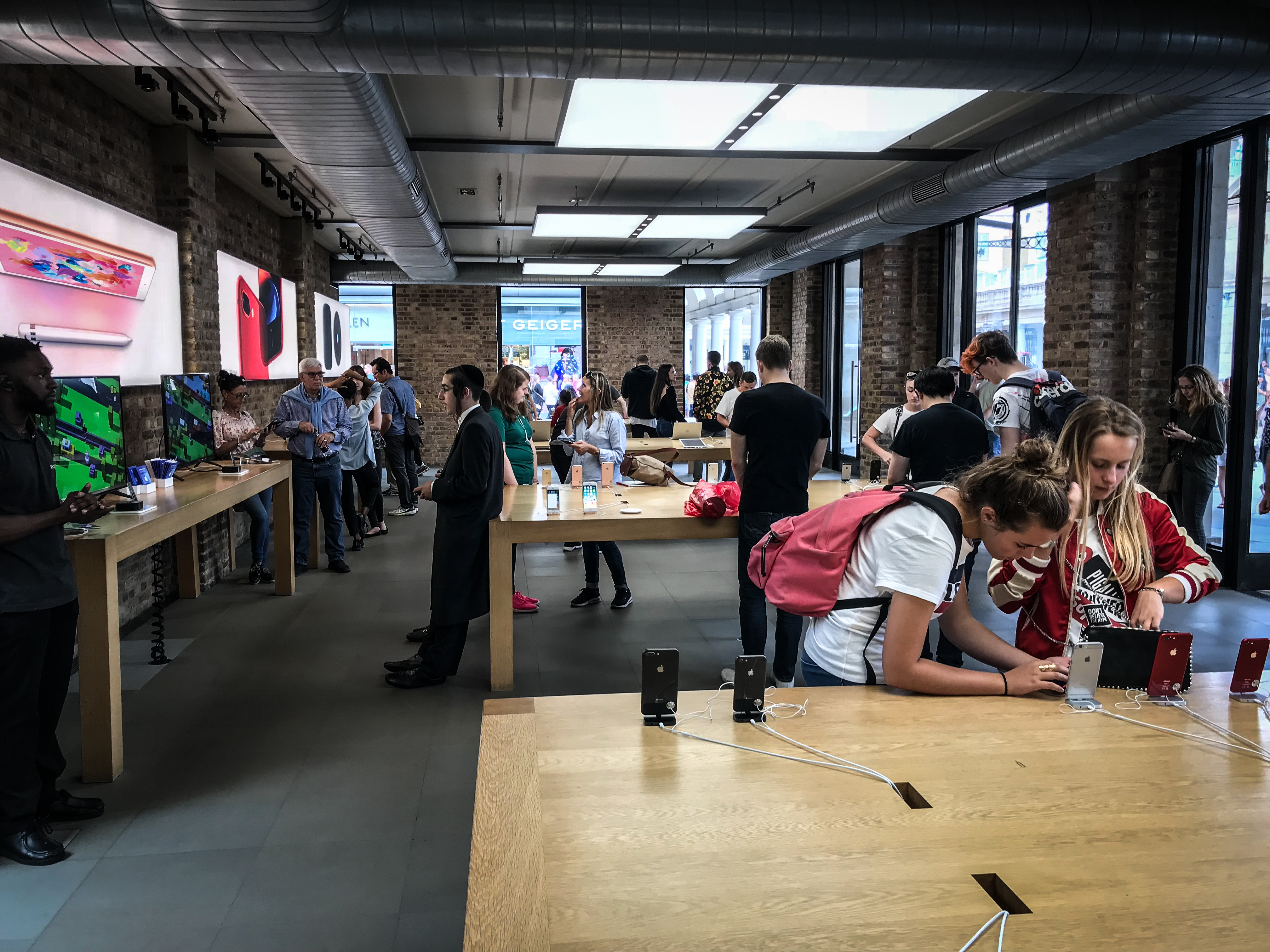 Apple Store v Covent Garden byl otevřený v roce 2010, čímž se tato čtyřpatrová prodejna stala největší na světě. Vypadá jako jakási “Oáza klidu z budoucnosti”. Co se týče zboží – nechybí zde nic. Od Macbooků, přes iPhony až po elektronické hračky.