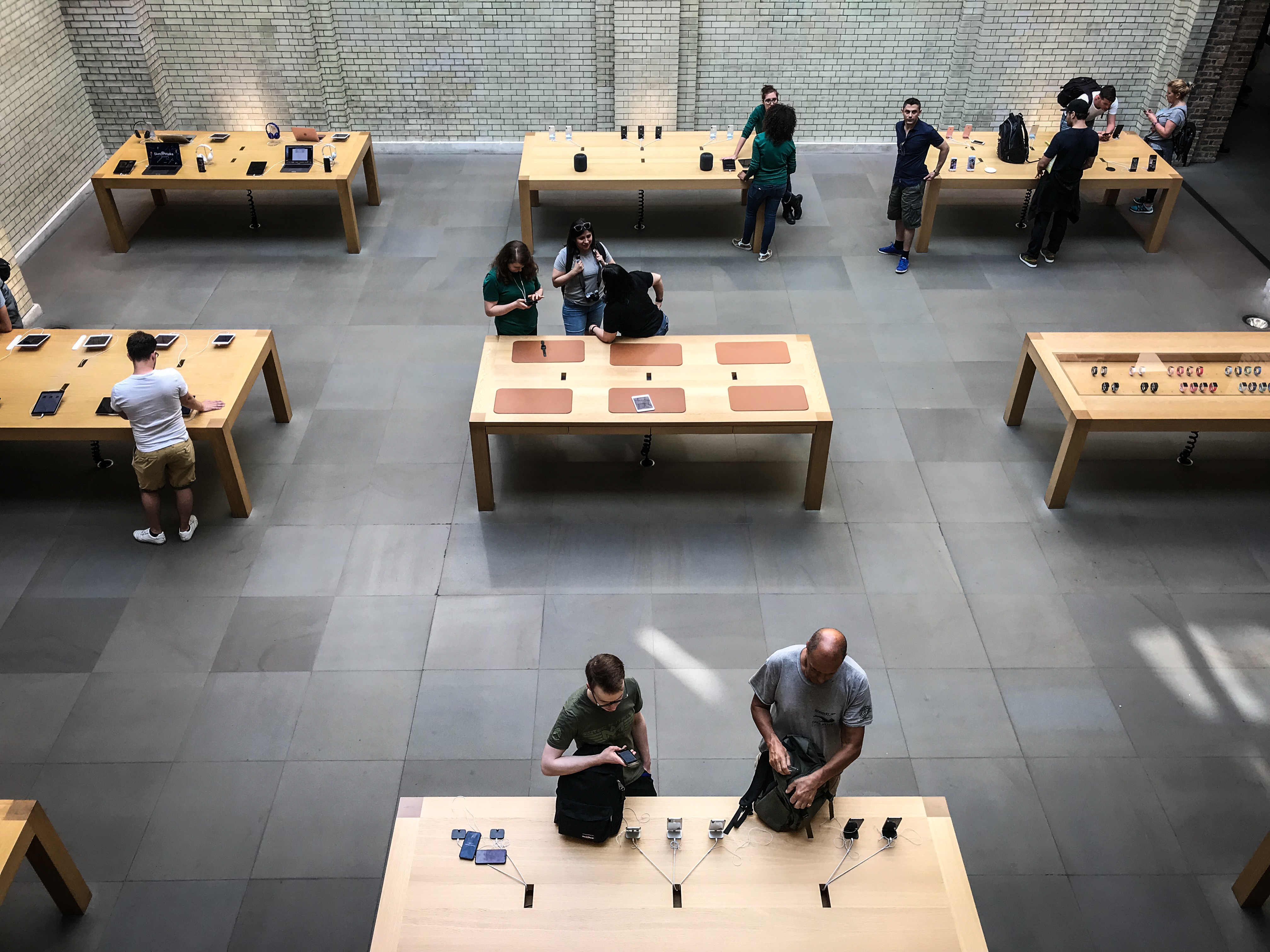 V prostorách pobíhá několik desítek zaměstnanců v zelených tričkách s logem jablíčka a s úsměvem se vás ptají na to, s čím vám mohou pomoci, představí se, zeptají se vás na jméno, odkud jste a prohodí s vámi pár frází. Vybrali jste zboží a chcete platit? Na chození ke kase zapomeňte, ta tu není. Zaměstnanci k vám dojdou s terminálem a účtenku vám pošlou na email. Když je zboží připraveno, donesou vám jej a chvíli se s vámi zastaví na pár slov. Prostě příjemný nákup, ze kterého máte radost. A tak to má být.
